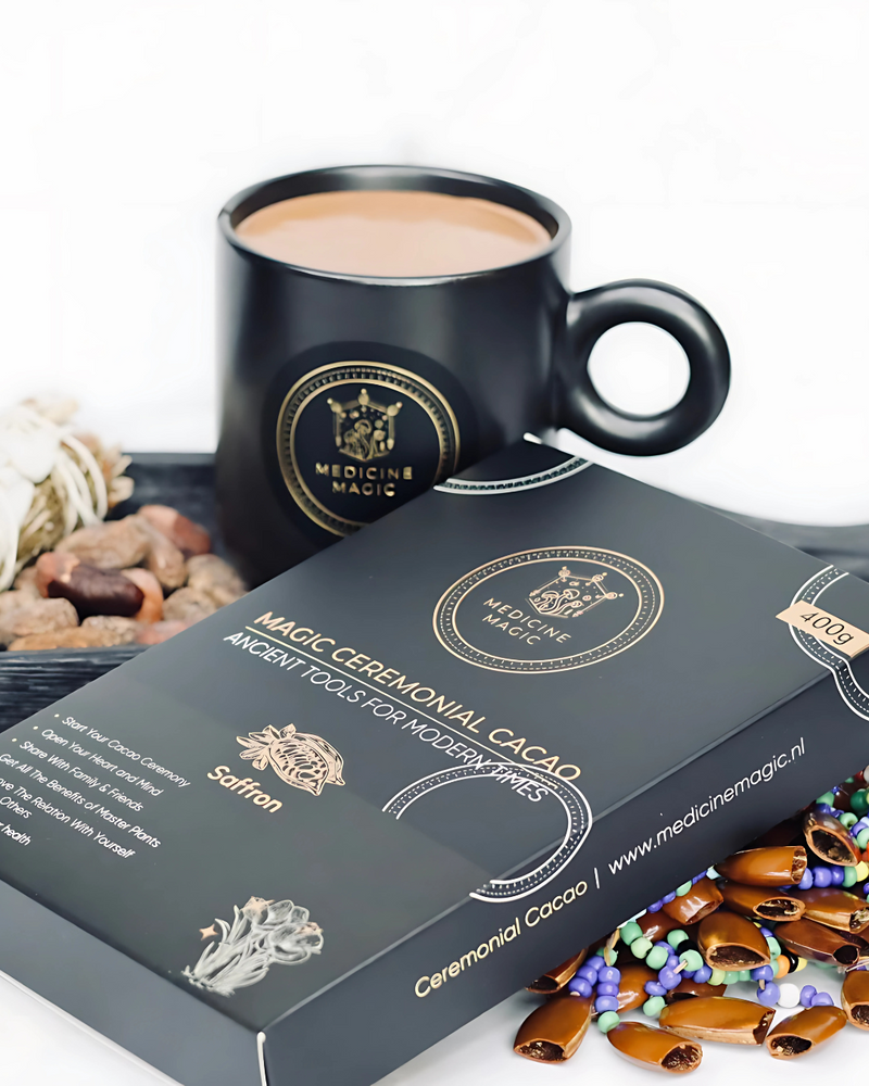 Use it during meditation, ceremony or a mindful break. The smooth cacao base and delicate saffron notes create a sensory experience that connects body and mind.